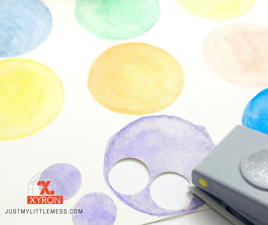 3. Punch out 4 circles of each color using the 1-inch punch. Remember the paper is a much thicker than cardstock, so this might take a little extra effort.